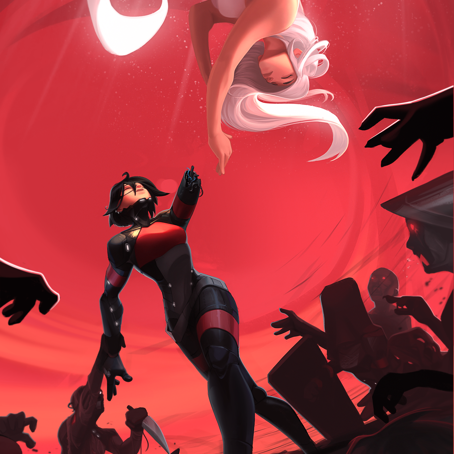 Art Fight submissions with a one day completion time requirement. The best were selected for higher polish into key art throws.